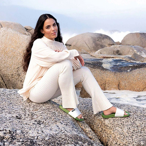 Das schlichte Design der supersoften und extraleichten GIESSWEIN ECO SLIDES ist so trendy wie ihre Herstellung selbst. Die nachhaltige Performance-Sohle mit nachwachsender Algen-Biomasse und der offene Schaft aus recyceltem PET schonen Klima und Umwelt bei jedem Schritt. Der ECO SLIDE ist sanft zur Haut, maximal flexibel am Fuß, rutschfest, wasserdicht und gibt durch die perfekte Passform sehr guten Halt. Ob als Pool-Slide im Schwimmbad & Spa getragen, als stylischer Slipper beim Strandspaziergang, als flache Relax-Pantolette am See oder entspannt zu Hause im Sommer – genieße den nachhaltigen Komfort im GIESSWEIN ECO SLIDE.